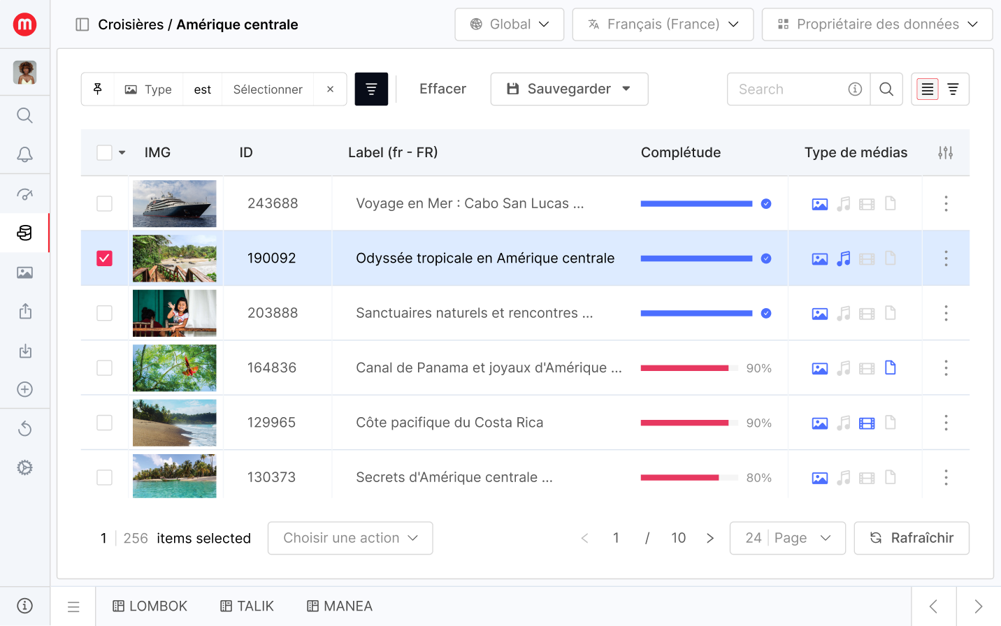 Harmonisez vos informations sur tous vos outils. Adaptez automatiquement vos offres, vos documents et vos visuels à plusieurs marchés et langues (cas Ponant : 8 marchés, 3 langues) .