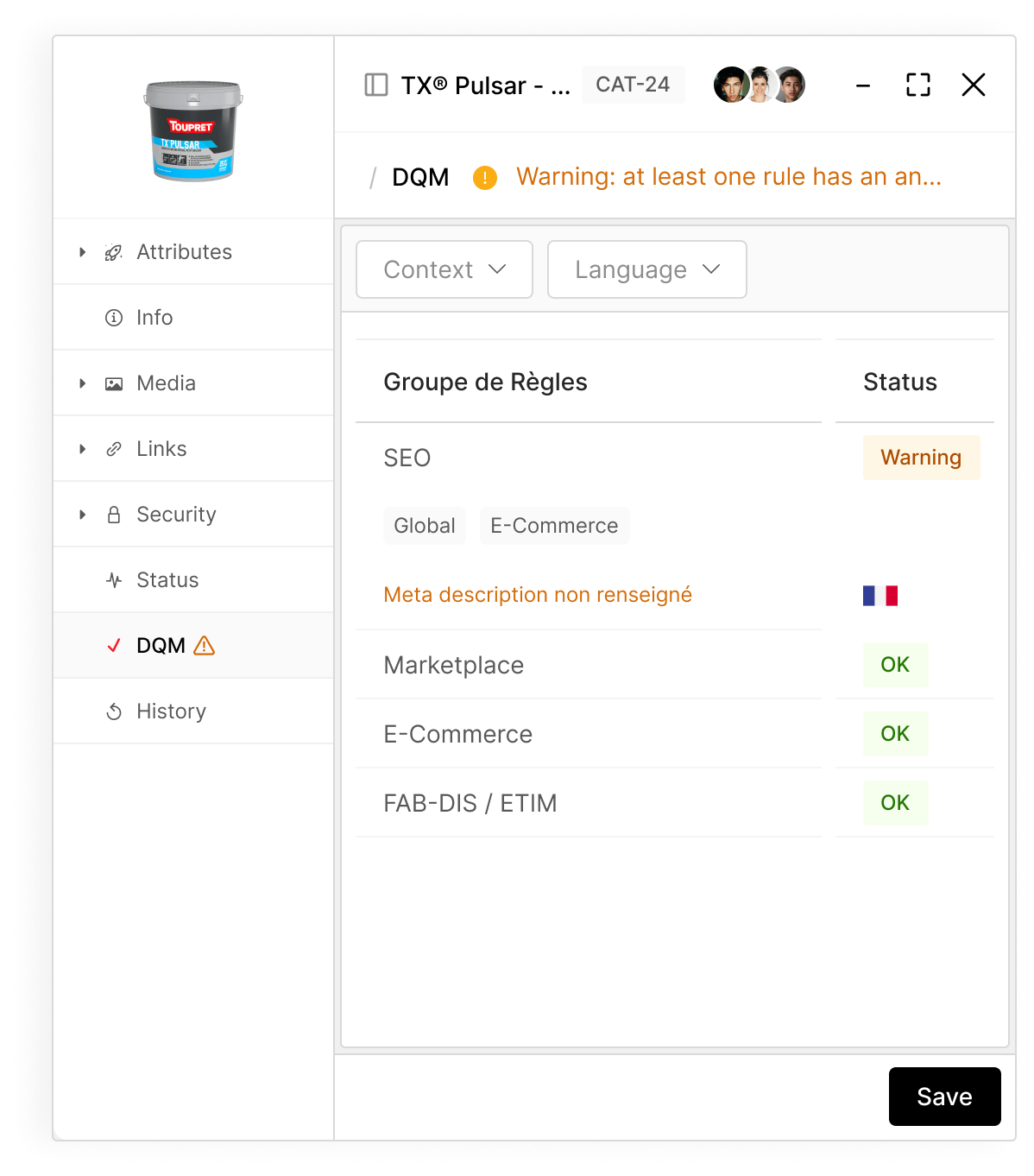 Résultat : Une « qualité et cohérence des informations produit » , une collaboration améliorée et des exports FAB-DIS générés directement depuis le PIM MaPS.